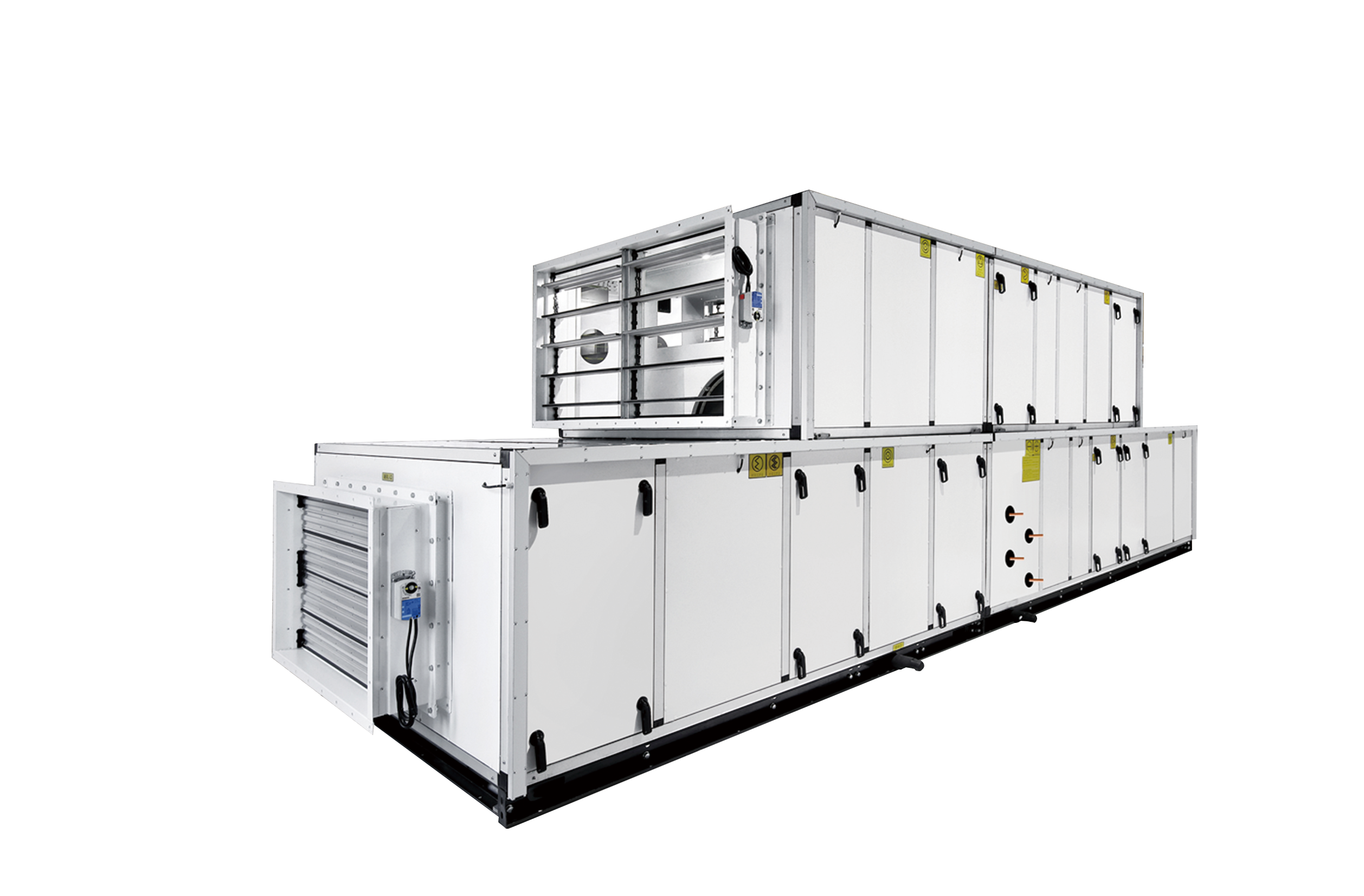 High-quality fan: A variety of high-quality fans are optional, including direct drive double suction centrifugal fan, double suction forward /backward centrifugal fan, plug fan, EC fan and so on. The fan outlet and flange are soft connected. The shock-absorbing components between the fan and the base can isolate the vibration effectively.